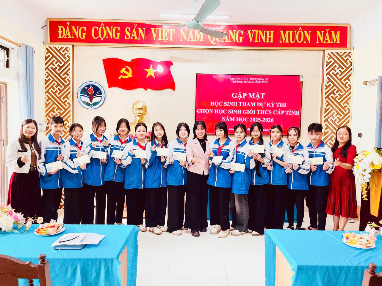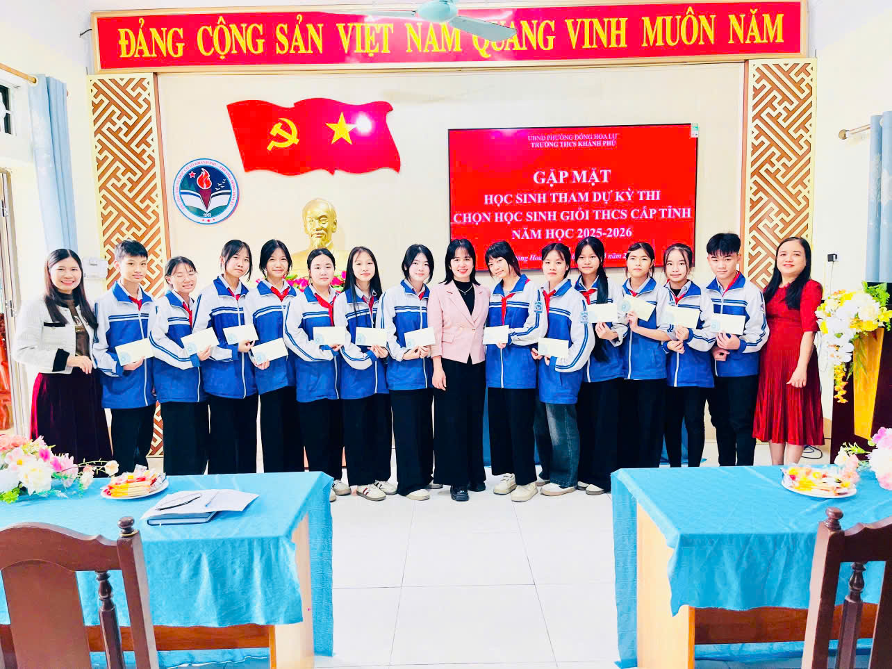 Trong không khí thi đua học tập sôi nổi của năm học 2025-2026, trường THCS Khánh Phú đã tổ chức buổi gặp mặt, động viên các em học sinh tham dự kì thi Học sinh giỏi lớp 8; 9 cấp tỉnh.