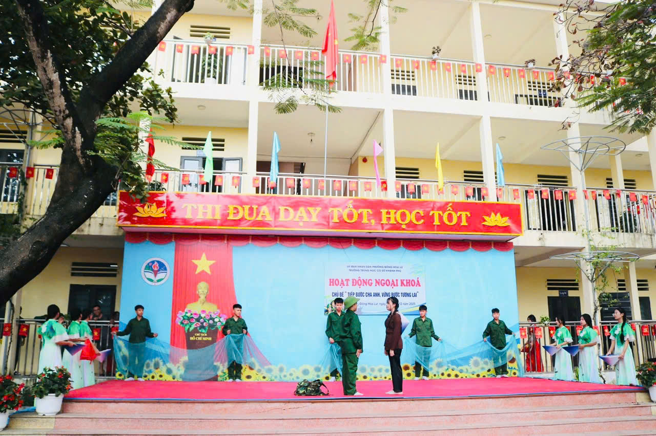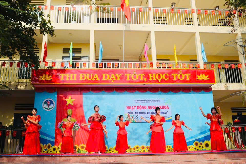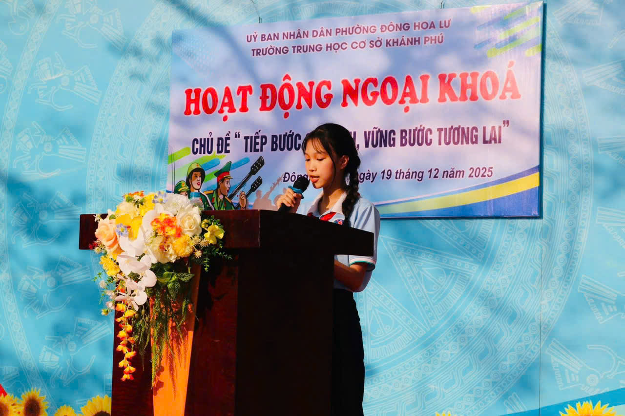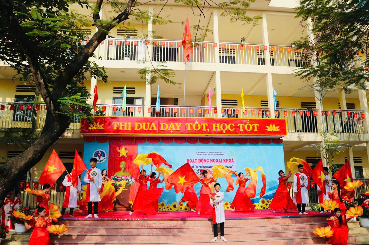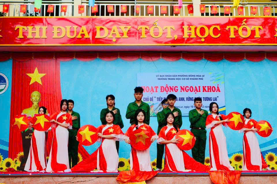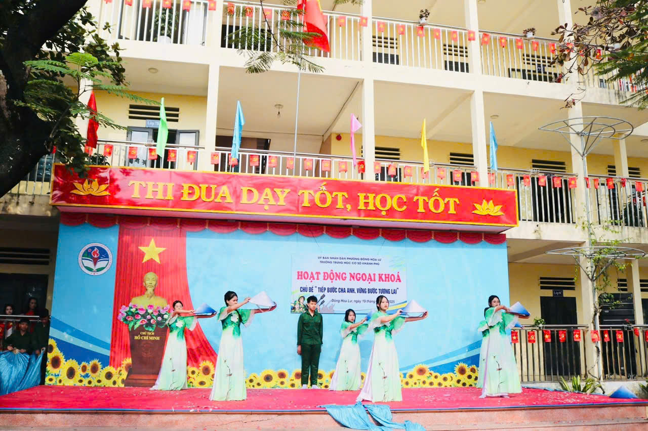 Nhằm giáo dục truyền thống yêu nước, lòng tự hào dân tộc và tri ân các thế hệ cha anh đã hy sinh vì Tổ quốc, Trường THCS Khánh Phú đã long trọng tổ chức buổi HĐNK với chủ đề “ Tiếp bước cha anh, vững bước tương lai” nhân dịp kỷ niệm 81 năm ngày thành lập Quân đội Nhân dân Việt Nam. Buổi HĐNK diễn ra với nhiều nội dung ý nghĩa, thiết thực: