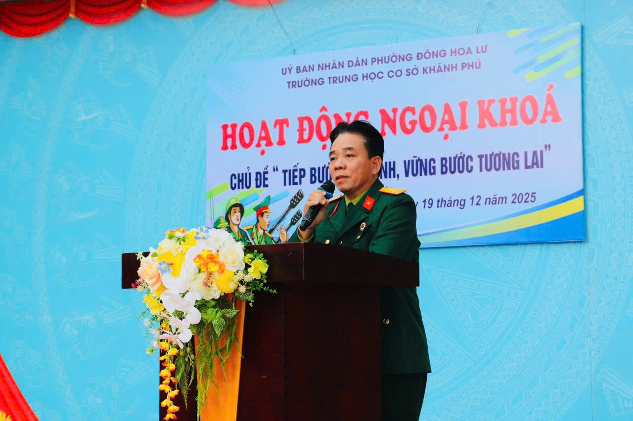 Ông Doãn Văn Bích- Hội trưởng hội CCB phường Đông Hoa Lư đã xúc động ôn lại những năm tháng chiến đấu, hy sinh gian khổ của người lính qua hai cuộc kháng chiến. Những câu chuyện chân thực, giàu cảm xúc đã giúp học sinh hiểu rõ hơn giá trị của hòa bình hôm nay. Đồng thời đại diện CCB đã chia sẻ về vai trò, trách nhiệm của người lính trong thời bình, đặc biệt trong công tác bảo vệ chủ quyền, an ninh biên giới quốc gia, để lại nhiều ấn tượng sâu sắc cho thầy và trò nhà trường.