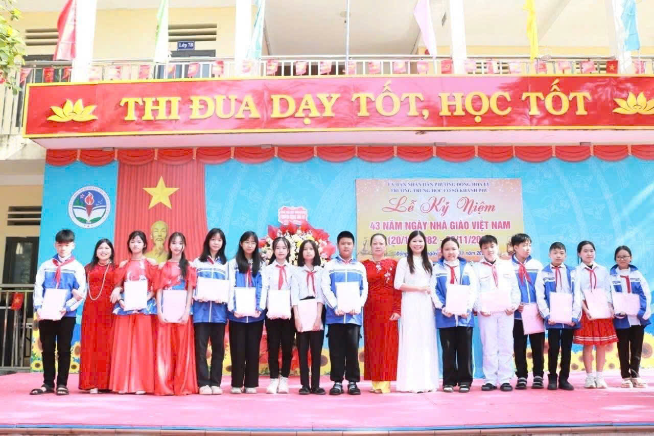 Trong buổi lễ nhà trường đã tôn vinh, trao thưởng cho các tập thể lớp, cá nhân đạt thành tích xuất sắc trong phong trào thi đua lập thành tích chào mừng ngày Nhà giáo Việt Nam 20/11.