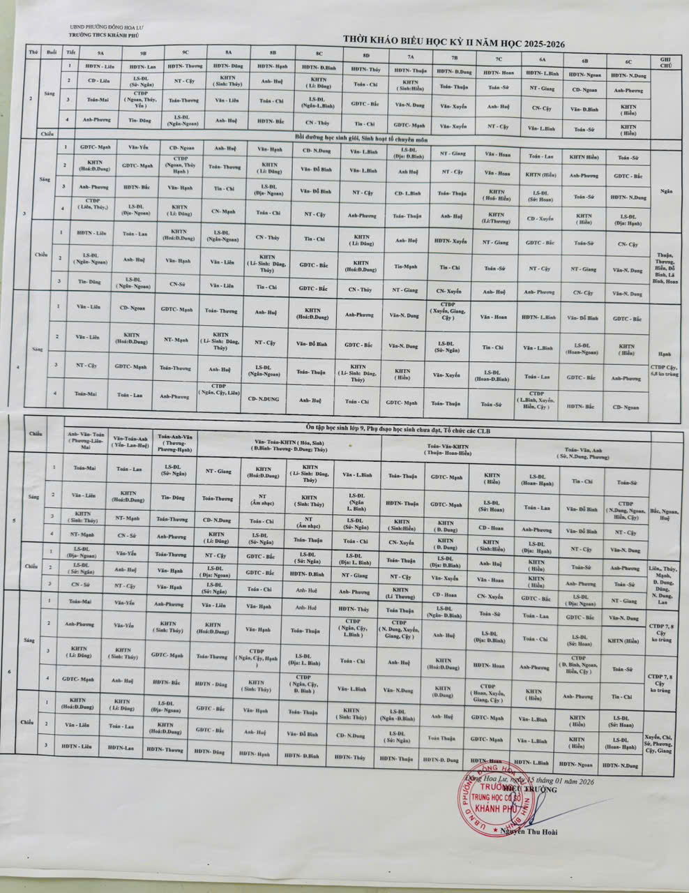 Thời khóa biểu HKI, năm học 2025-2026
