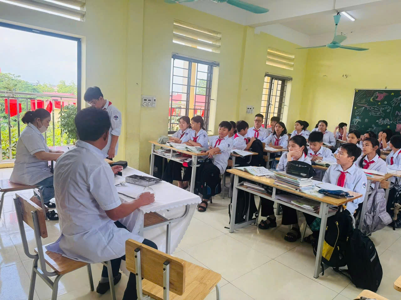 TRƯỜNG THCS KHÁNH PHÚ PHỐI HỢP VỚI TRẠM Y TẾ KHÁNH PHÚ, PHƯỜNG ĐÔNG HOA LƯ KHÁM SỨC KHOẺ CHO HỌC SINH